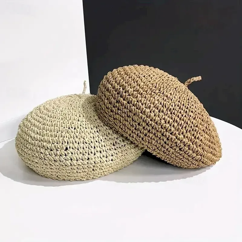 £23.80Straw Crochet Thin Beret Hats Solid Color Casual Painter Cap Lightweight Breathable Berets For Women Girls Spring & Summer 2025