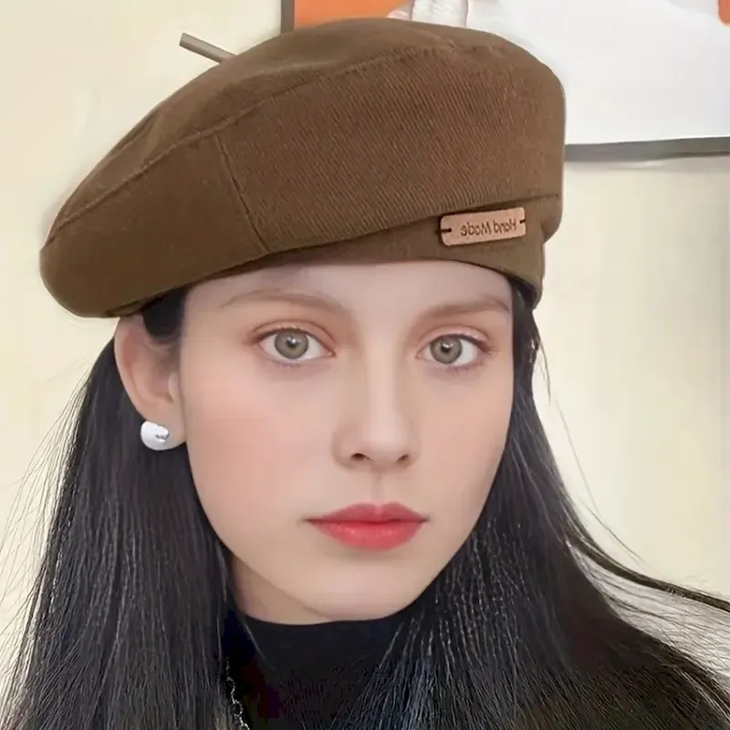 1pc Trendy Casual Brown British Beret With Letter Patched For Women Autumn Winter Painter Fedora Hat 2025