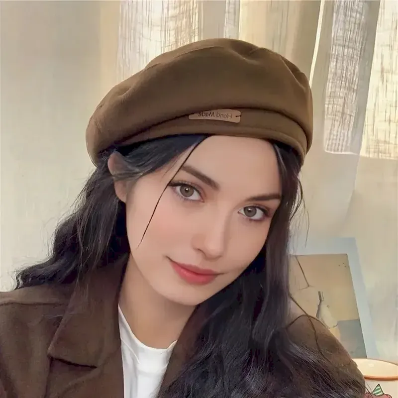 1pc Trendy Casual Brown British Beret With Letter Patched For Women Autumn Winter Painter Fedora Hat 2025